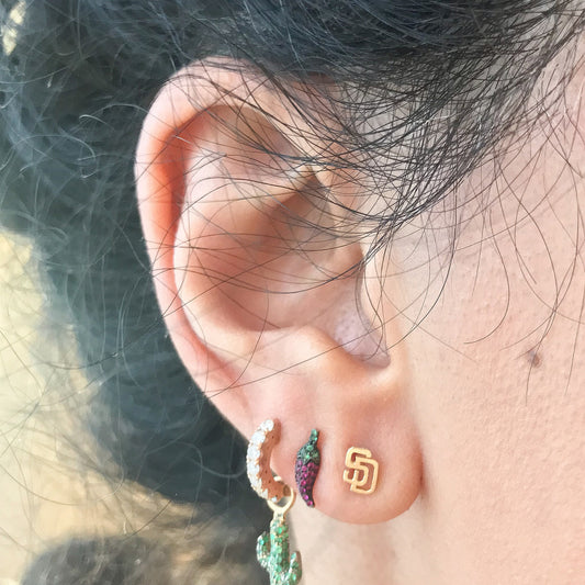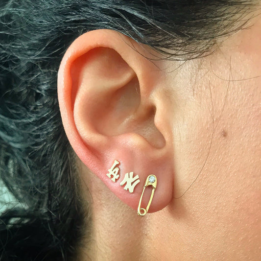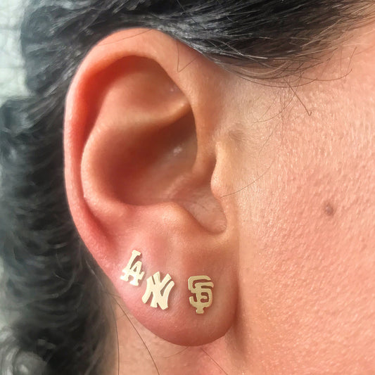14K Gold "LA" Logo Initials Stud Earring, XS Size