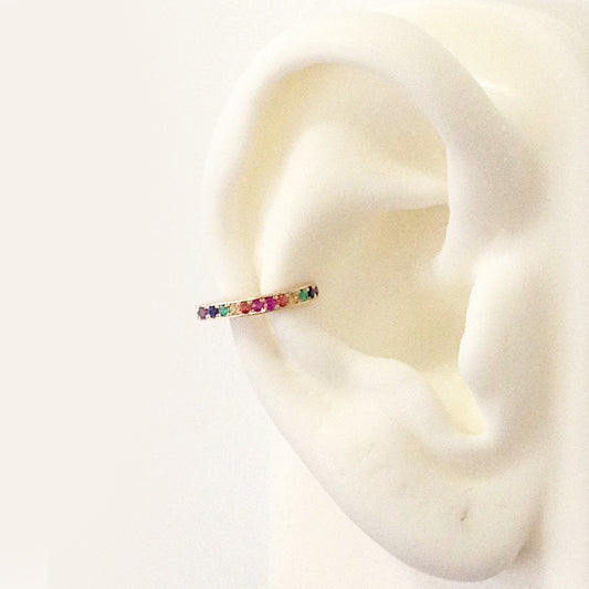 Spike Collection: 14K Gold Pavé Rainbow Gemstone Spike Point Ear Cuff