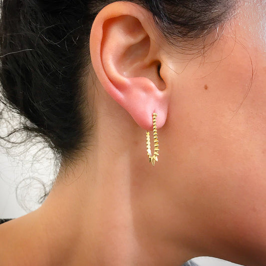Spike Collection: 14K Gold Spike Huggie Hoop Earrings, Large Size