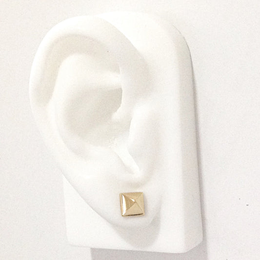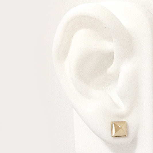 Spike Collection: 14K Gold Pyramid Spike Stud Earrings, XS Size