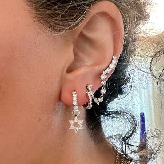 14K Gold Pavé Diamond Star of David Hoop Earring Charms