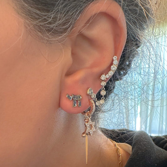 14K Gold Pavé Diamond Hebrew Chai Stud Earrings