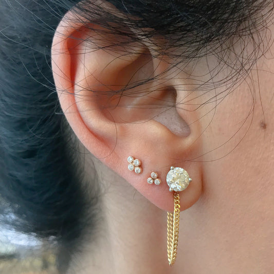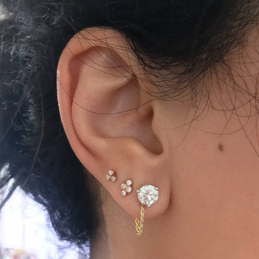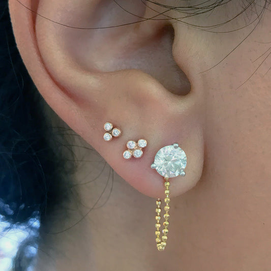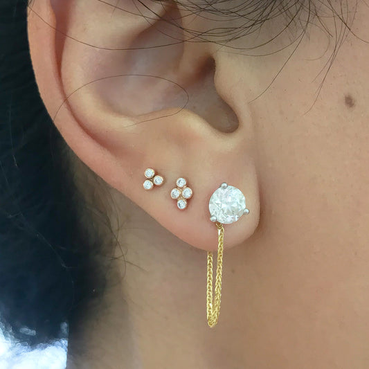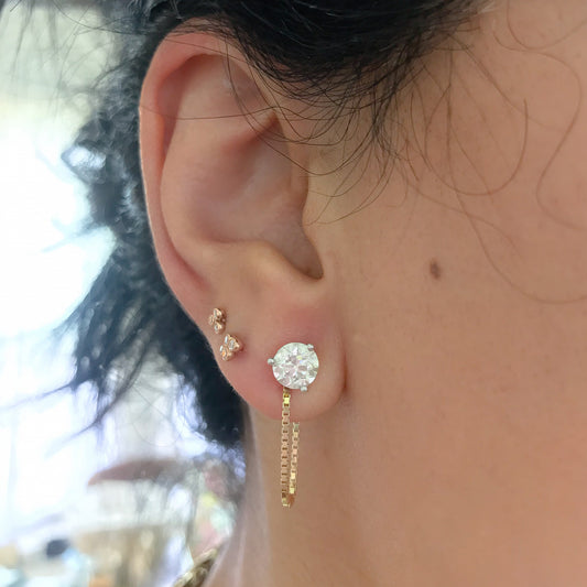 1mm Diamond Solitaire 14K Gold Chain Dangle Stud Earrings