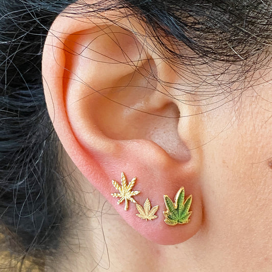 14K Gold Marijuana Leaf Stud Earrings ~ Small Size