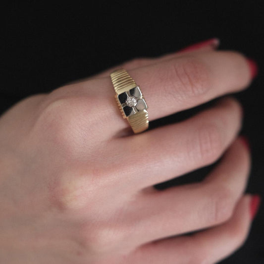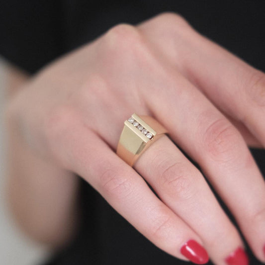 The Two Tone Diamond Polka Dot Signet 18K Ring
