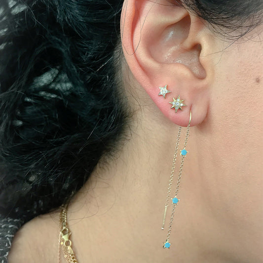 14K Gold Triple Turquoise Star Threader Chain Earrings
