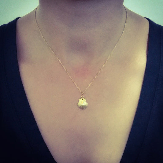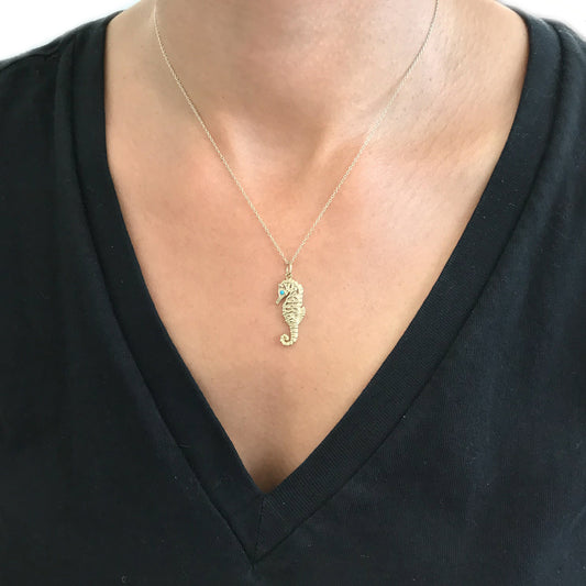 14K Gold Seahorse Pendant Necklace with Turquoise Eye, Large Size