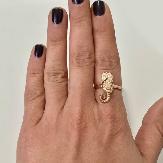 14K Gold Large Size Seahorse Ring with Diamond Eye