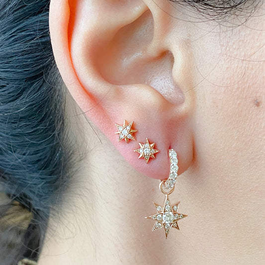 14K Gold Pavé Diamond Star Stud Earrings ~ XS Size