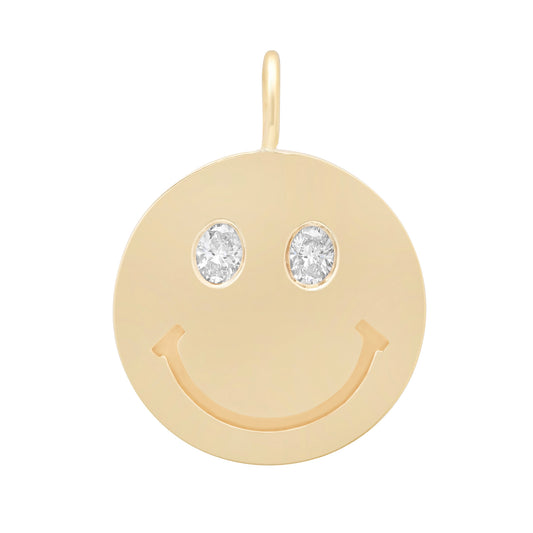 14K Gold Diamond Heart Eyes Smiley Face Charm Pendant