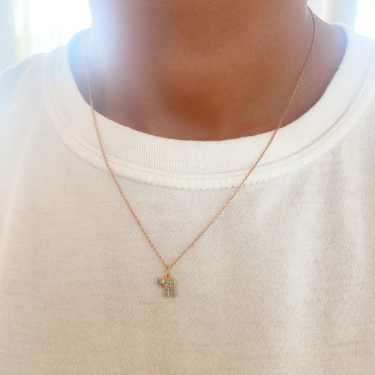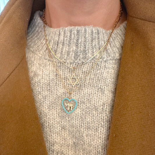 14K Gold Pavé Turquoise Hebrew Chai Charm Pendant