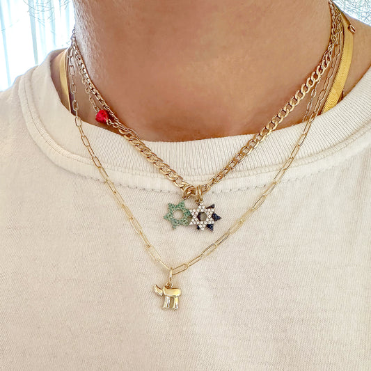 14K Gold Pavé Sapphire Hebrew Chai Charm Pendant