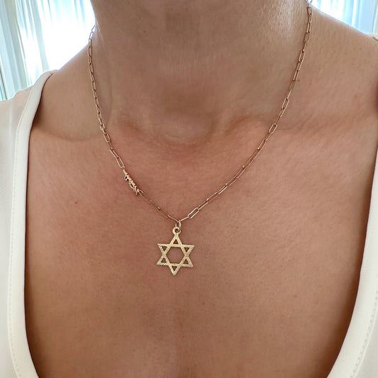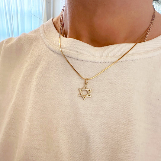 14K Gold Tiny Star of David Charm Pendant Necklace