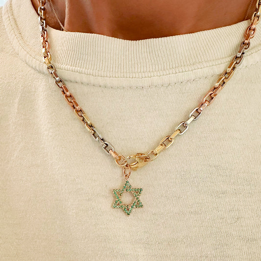 14K Gold Emerald Star of David Charm Pendant, Small Size