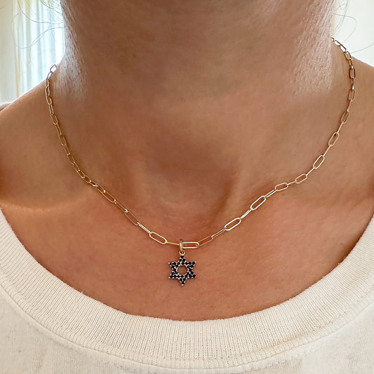 14K Gold Tiny Pavé Diamond Star of David Charm Pendant Necklace