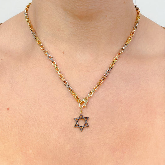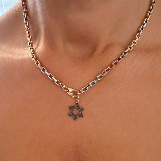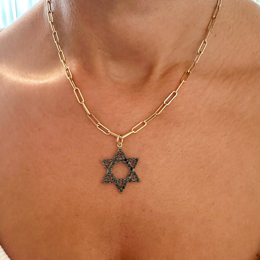 14K Gold Black Diamond Star of David Charm Pendant, Large Size