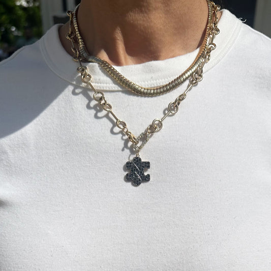 14K Gold Pavé Black Diamond Puzzle Piece Pendant, for Autism Awareness