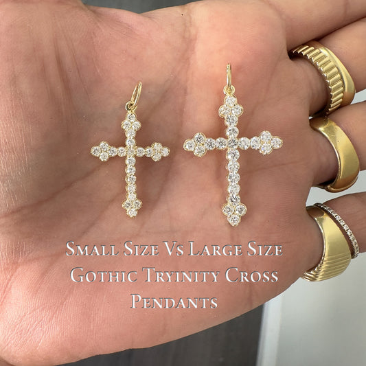14K Gold Diamond Gothic Trinity Cross Charm Necklace ~ Large Size
