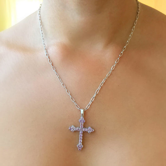 14K Gold Purple Sapphire Gothic Trinity Cross Necklace ~ Large Size