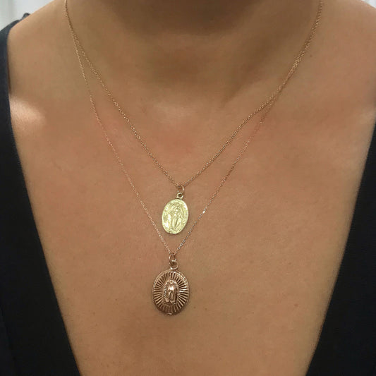 14K Gold Virgin Mary Miraculous Medal Charm Necklace
