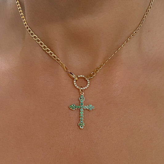 14K Gold Emerald Gothic Trinity Cross Necklace ~ Small Size