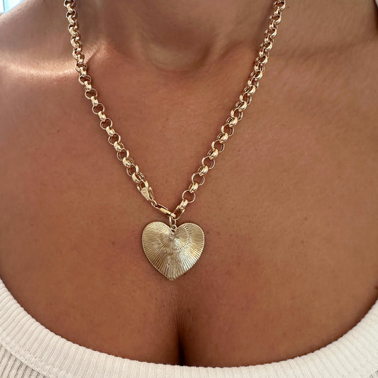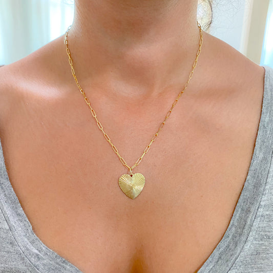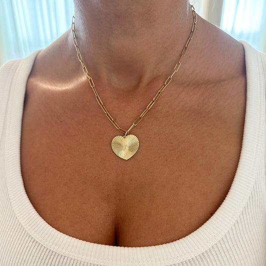 14K Gold Fluted Heart Medallion Charm Pendant, XL Size Heart