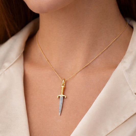 14K Gold Pavé Diamond Dagger Sword Pendant