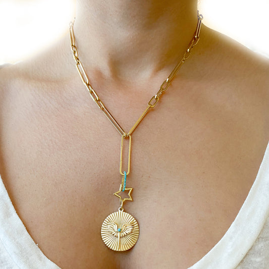 14K Gold Turquoise Fluted Phoenix Medallion Pendant
