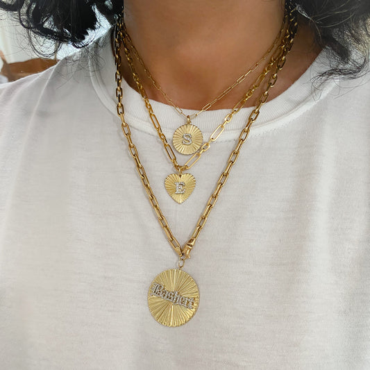 14K Gold Pavé Diamond Initial Fluted Heart Medallion Pendant, Medium Size Heart
