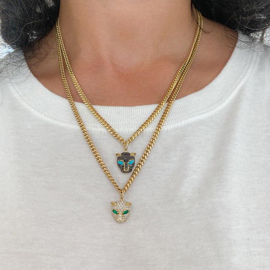 14K Gold Black Diamond Pavé Panther Charm Pendant ~ Marquise Turquoise Eyes