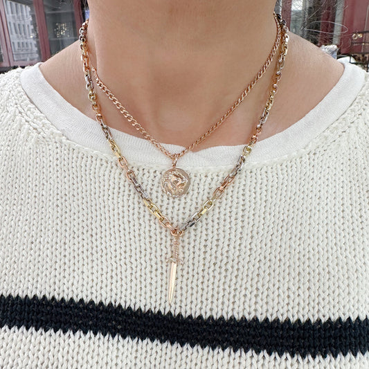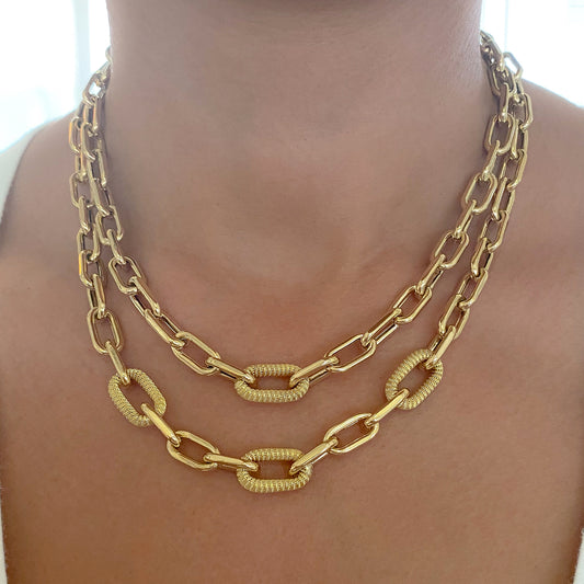 14K Gold Triple Rope Detail Thick Oval Link Necklace ~ LIMITED EDITION