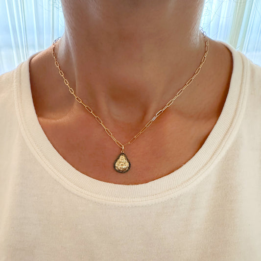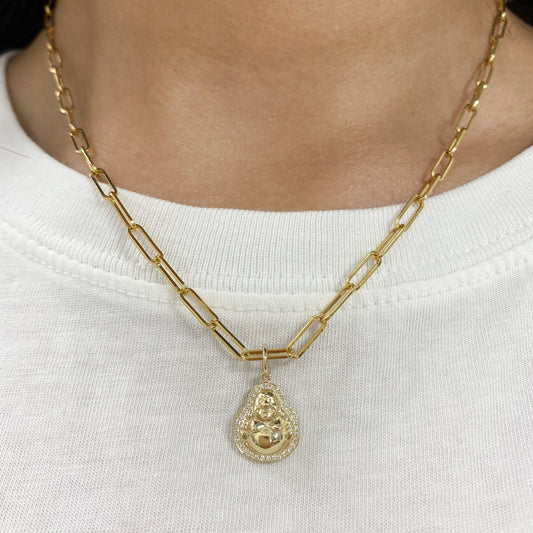 14K Gold Black Diamond Halo Buddha Charm Pendant