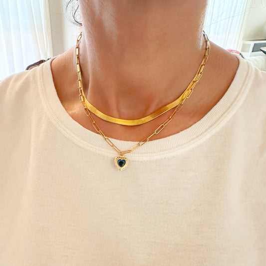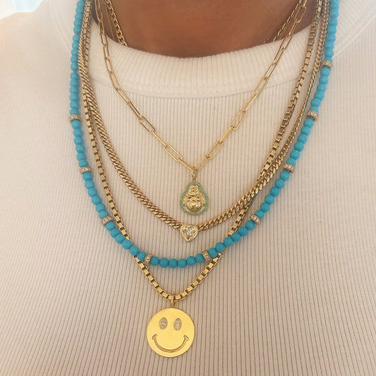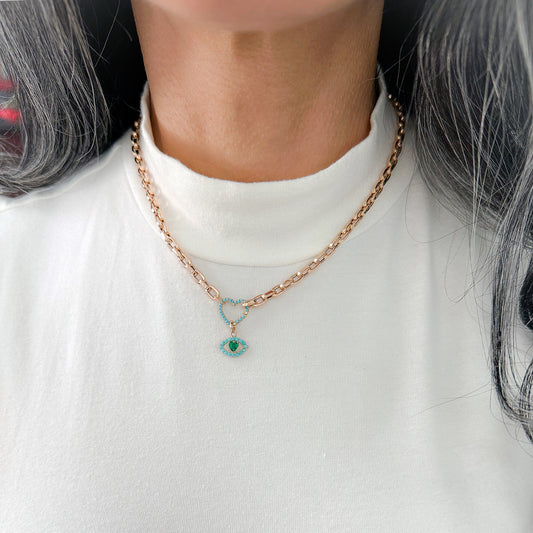 14K Gold Emerald Heart & Turquoise Evil Eye Necklace