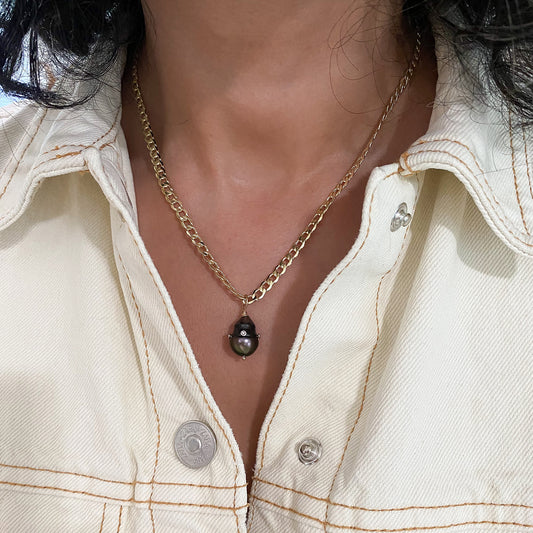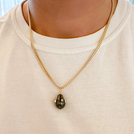 14K Gold Baroque Black Tahitian Pearl Pendant