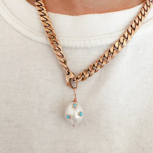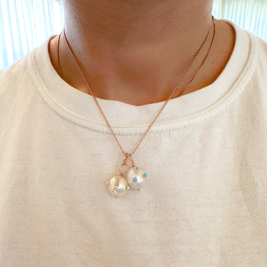 14K Gold Celestial Diamond & Turquoise Baroque Freshwater Cultured Pearl Pendant