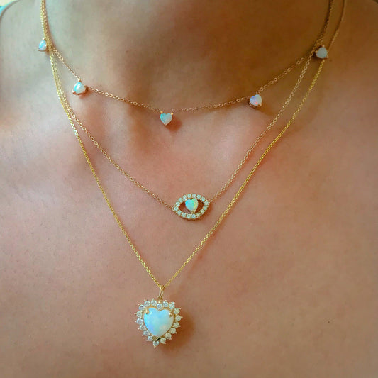 14K Gold Opal Heart & Diamond Evil Eye Necklace