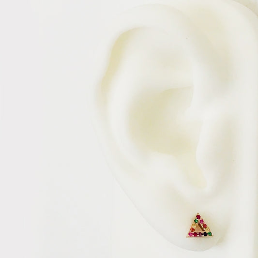 14K Gold Pavé Rainbow Gemstone Open Triangle Stud Earrings