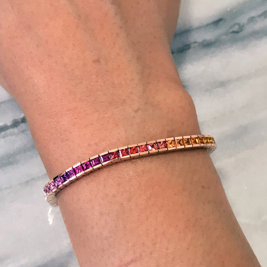 14K Gold Rainbow Sapphire Channel Set Tennis Bracelet