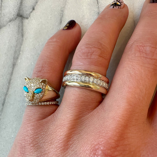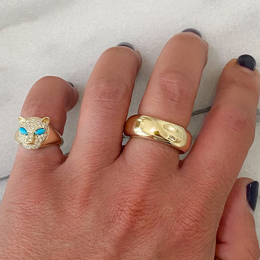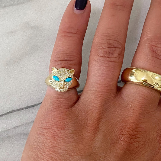 14K Gold Diamond Pavé Panther Signet Ring ~ Marquise Turquoise Eyes