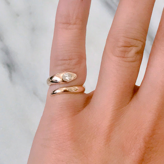 14K Gold Swivel Serpent Snake Wrap Ring ~ Oval Rose Cut Diamond Head, LIMITED EDITION