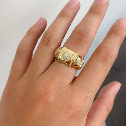 14K Gold Diamond Pavé Heart Past Present Future Ring