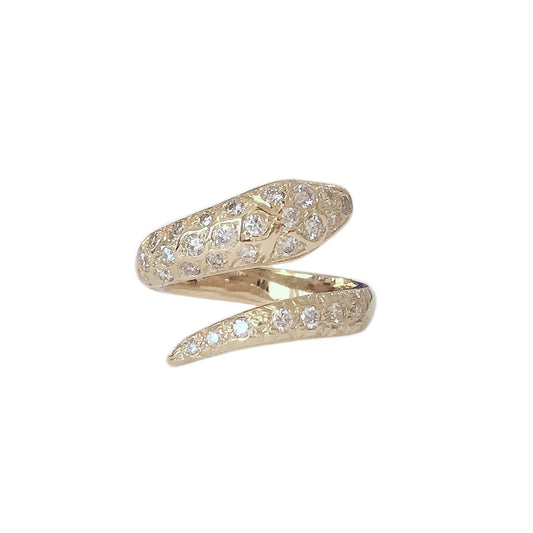 14K Gold Diamond Cobra Snake Wrap Bypass Ring