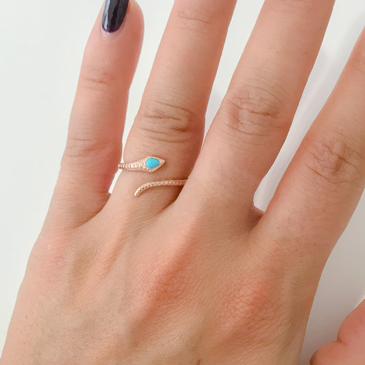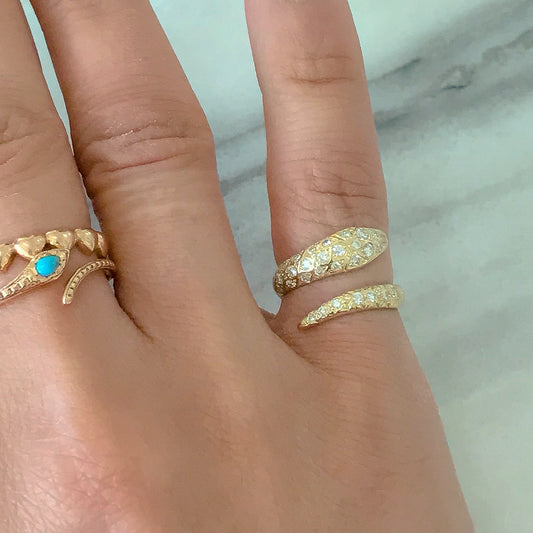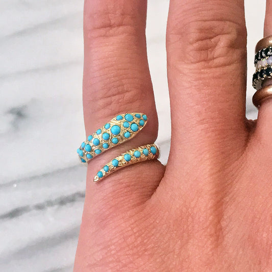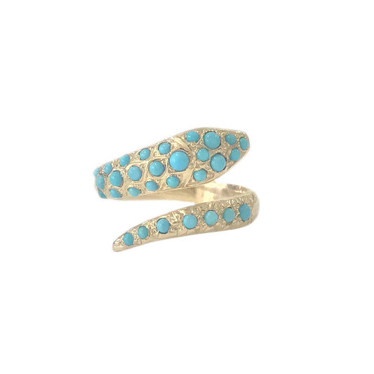 14K Gold Turquoise Snake Wrap Bypass Ring