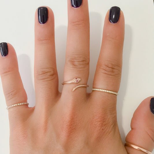 14K Gold Swivel Serpent Snake Wrap Ring ~ Emerald Eyes