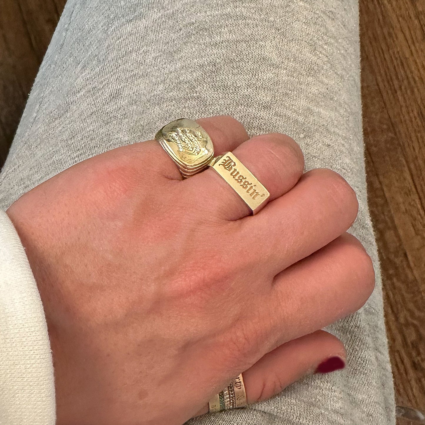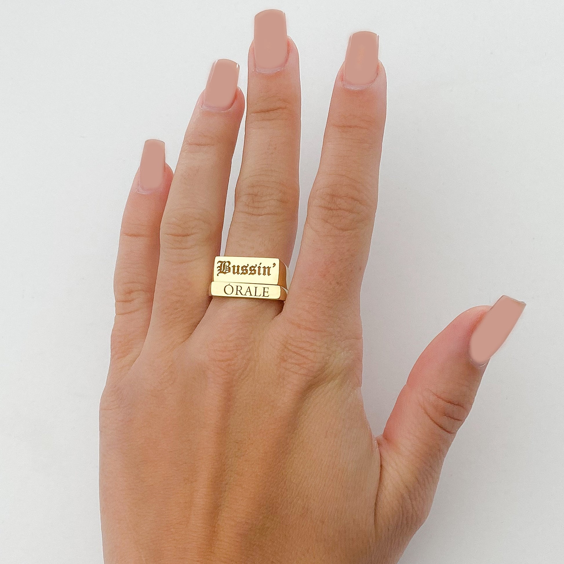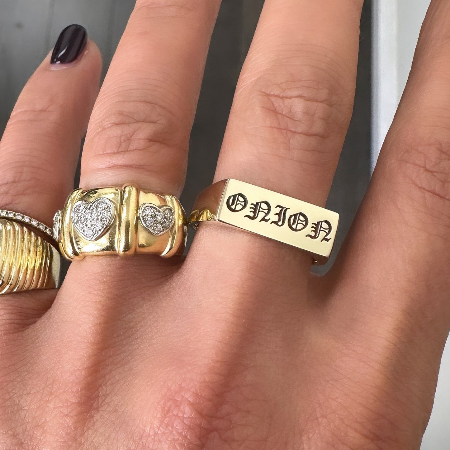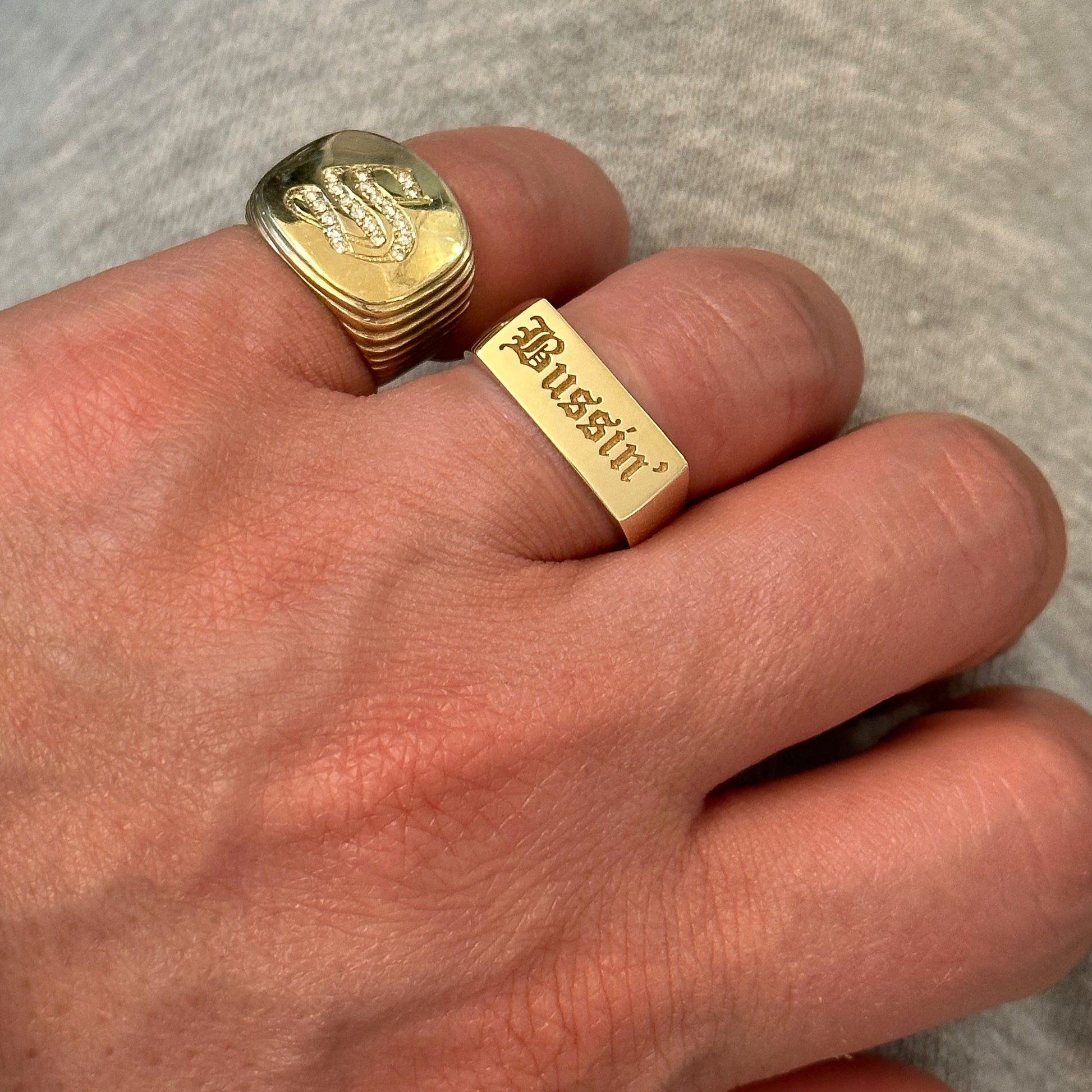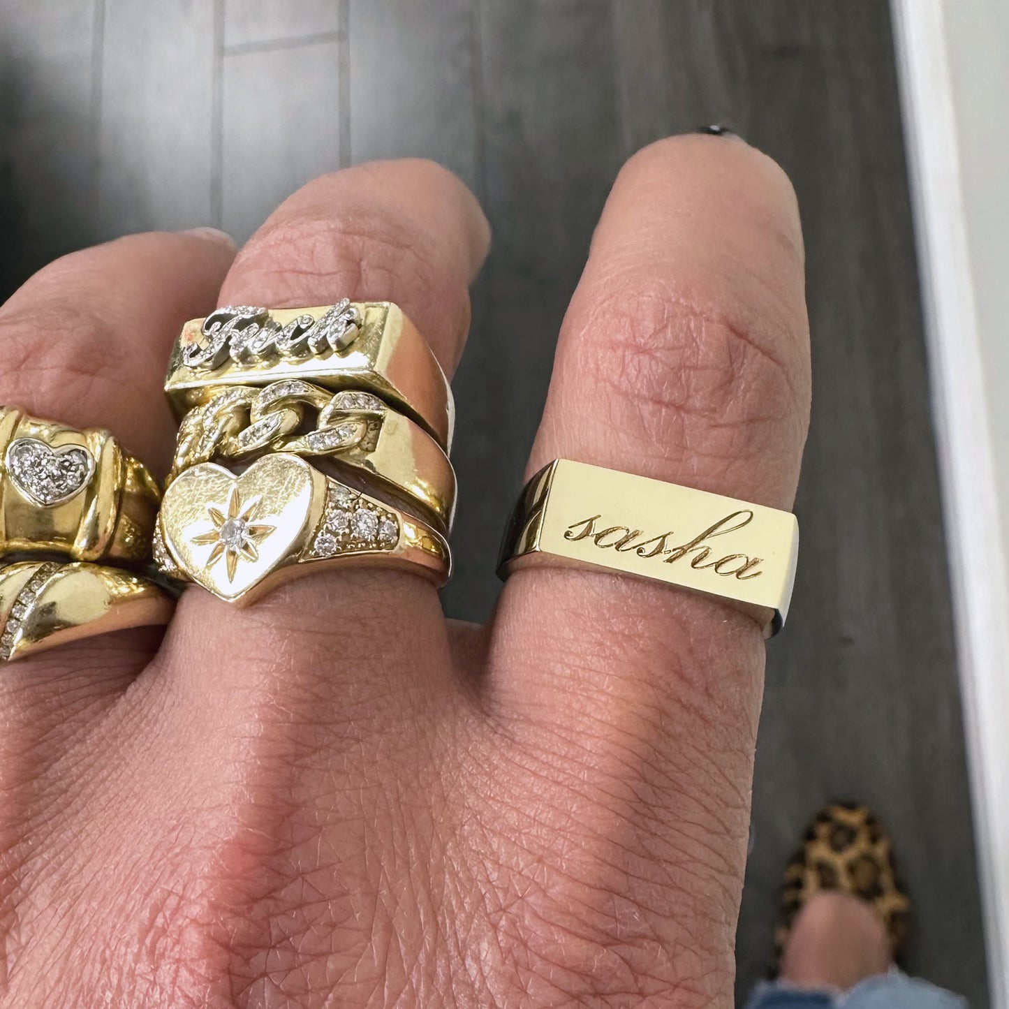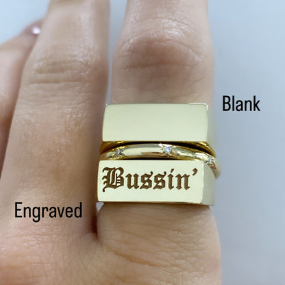 14K Gold Engravable Rectangle Signet Ring, Large Size