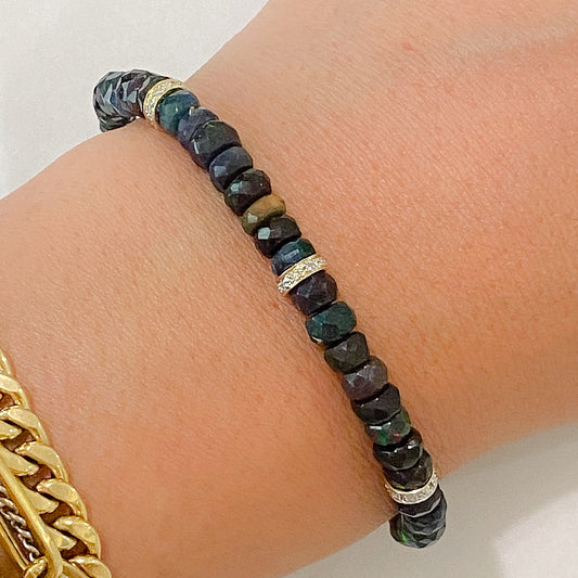 14K Gold Black Opal & Diamond Beaded Bracelet