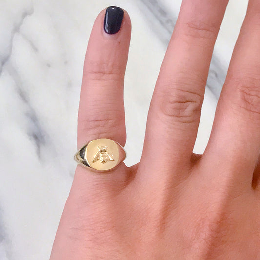 14K Gold Bumblebee Signet Ring
