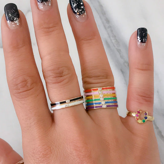 14K Gold Black Enamel & Diamond Micro Eternity Band Ring