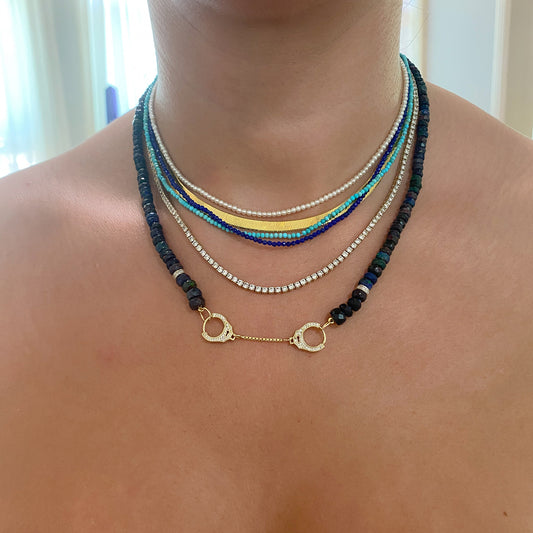 14K Gold Black Opal & Diamond Beaded Necklace
