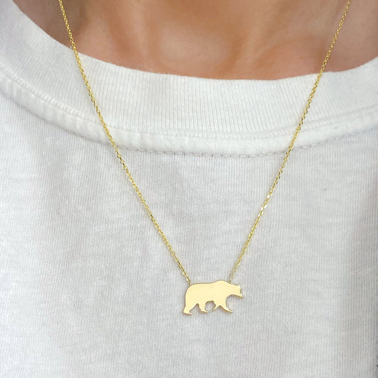 14K Gold Bruin Bear Charm Necklace (Engravable)